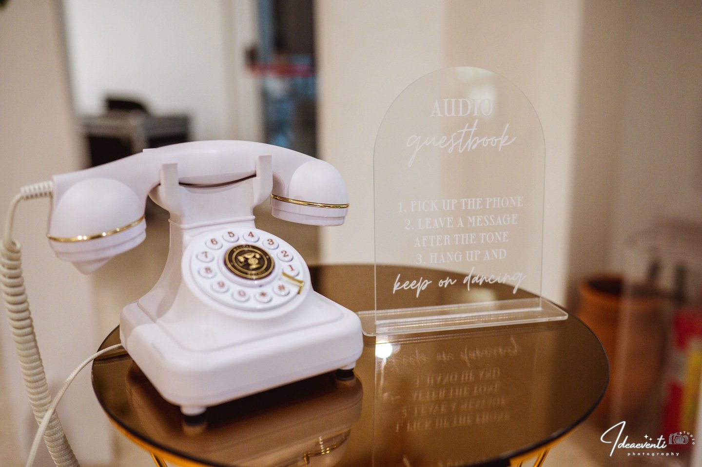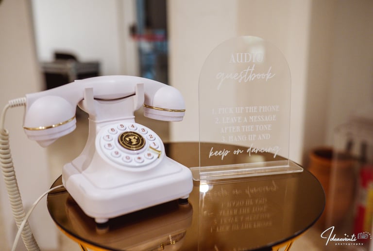 An old vintage telephone transformed into a modern voice guestbook. Guests can leave messages, anecdotes or good wishes for the newlyweds… to listen to again for years to come.