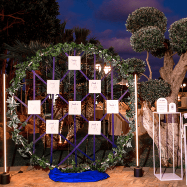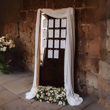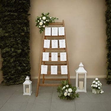 Questi eleganti cartelli, disposti all'ingresso della sala, permettono ai tuoi ospiti di scoprire facilmente il proprio tavolo, creando un'atmosfera di accoglienza e organizzazione.