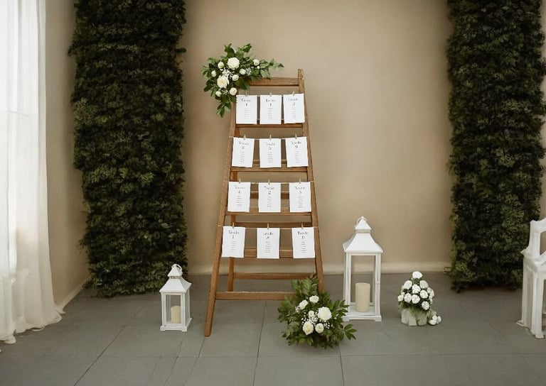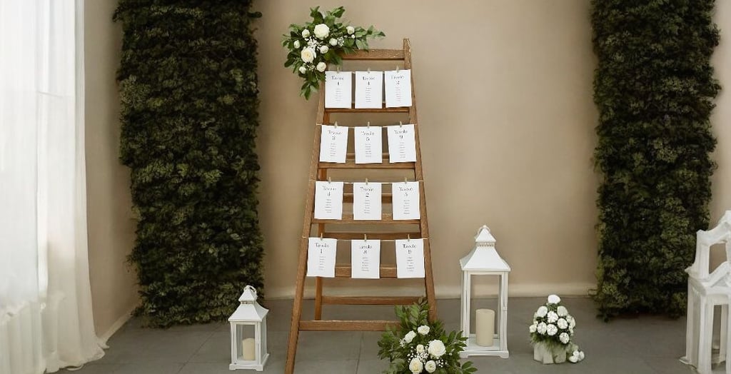Rustico, romantico e pieno di charme, il tableau su scala di legno è perfetto per chi desidera un allestimento naturale ma curato.
