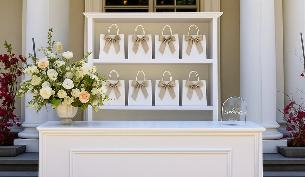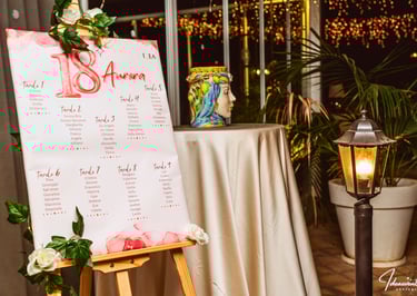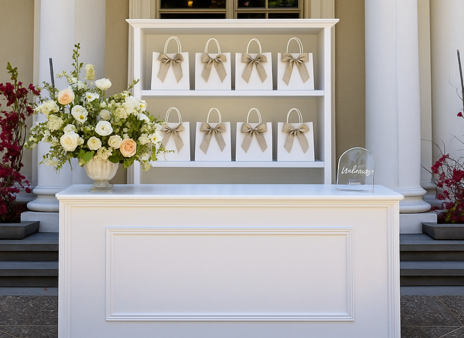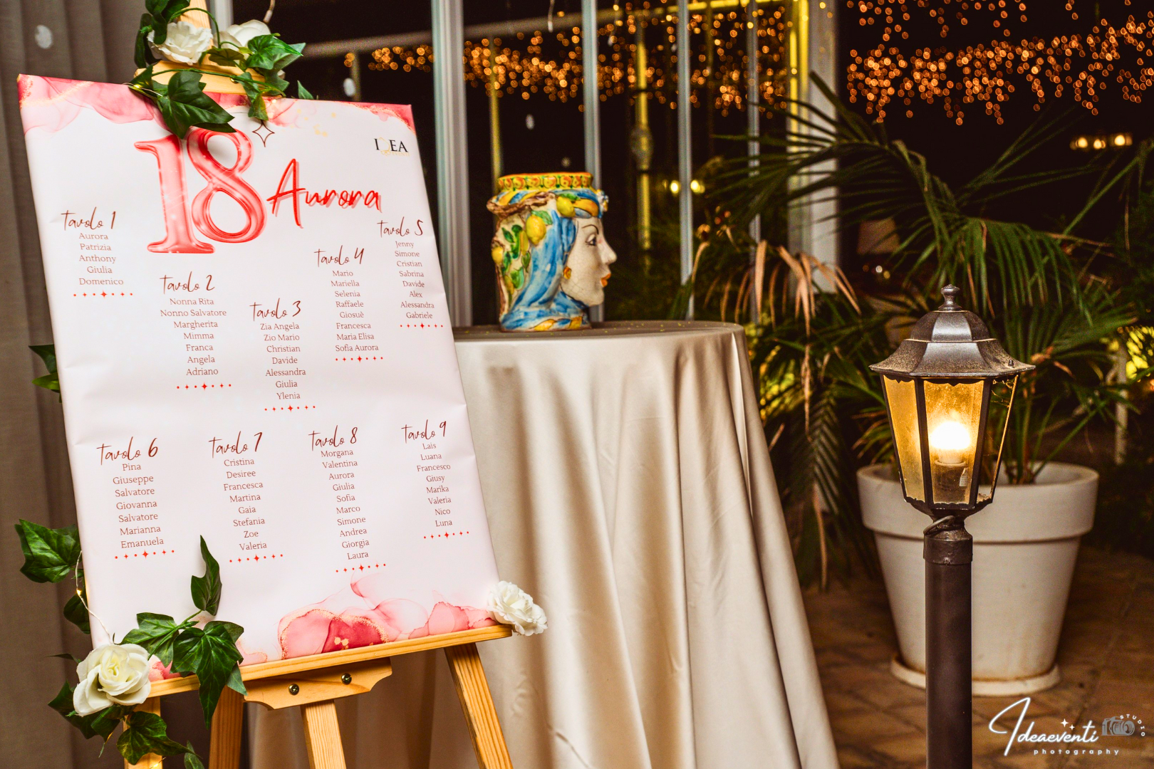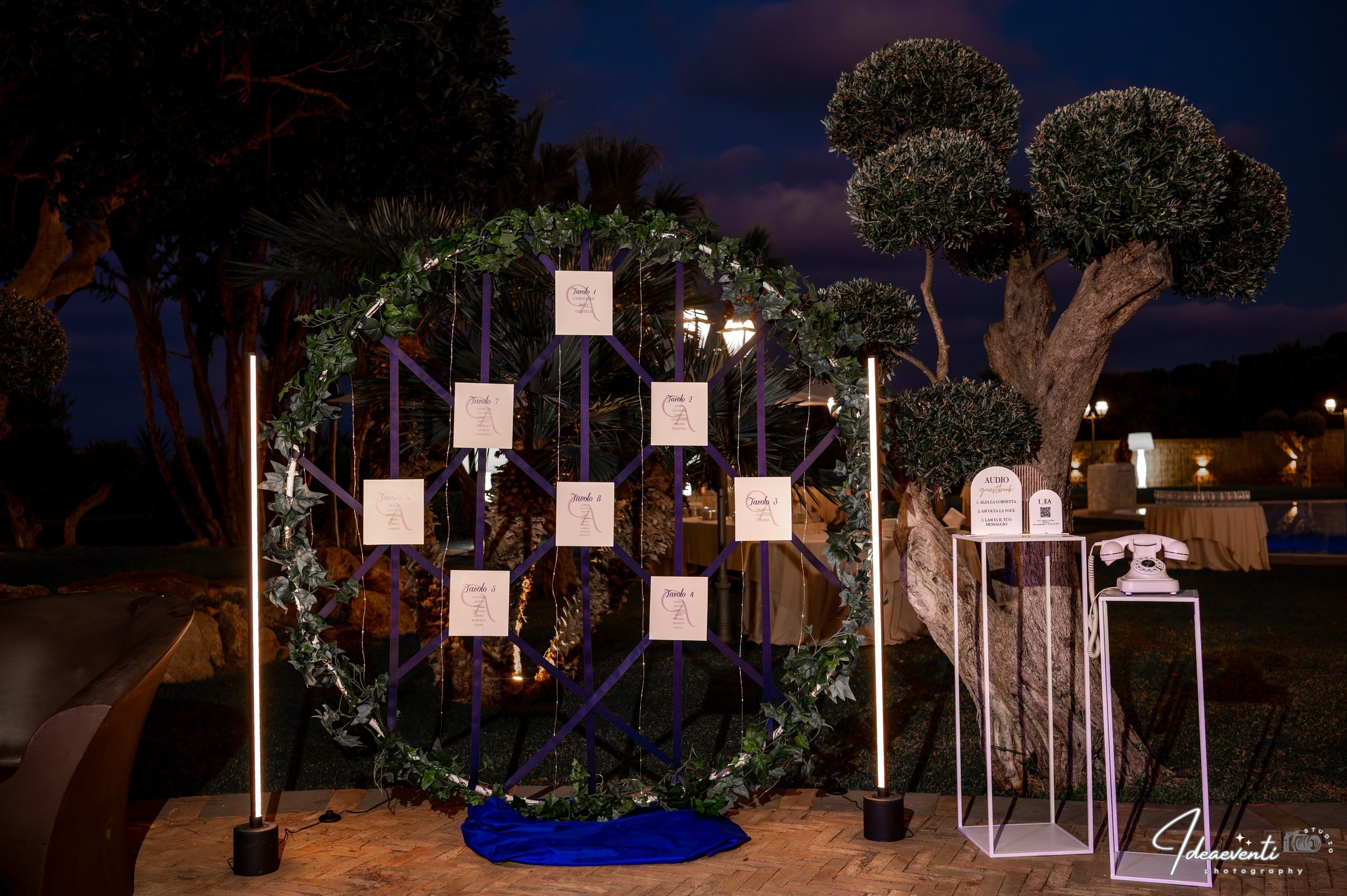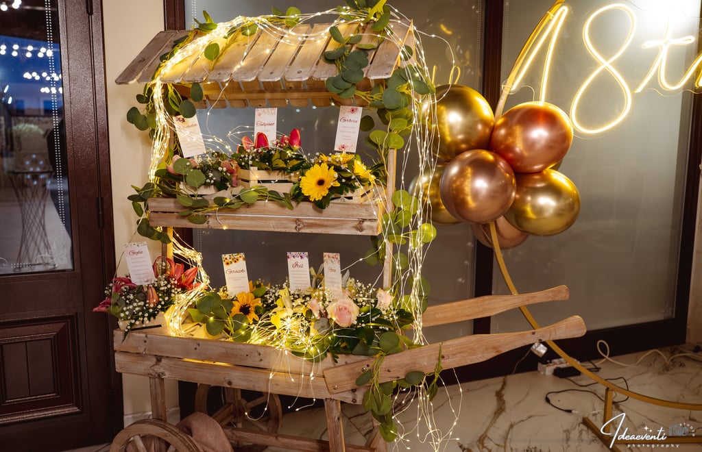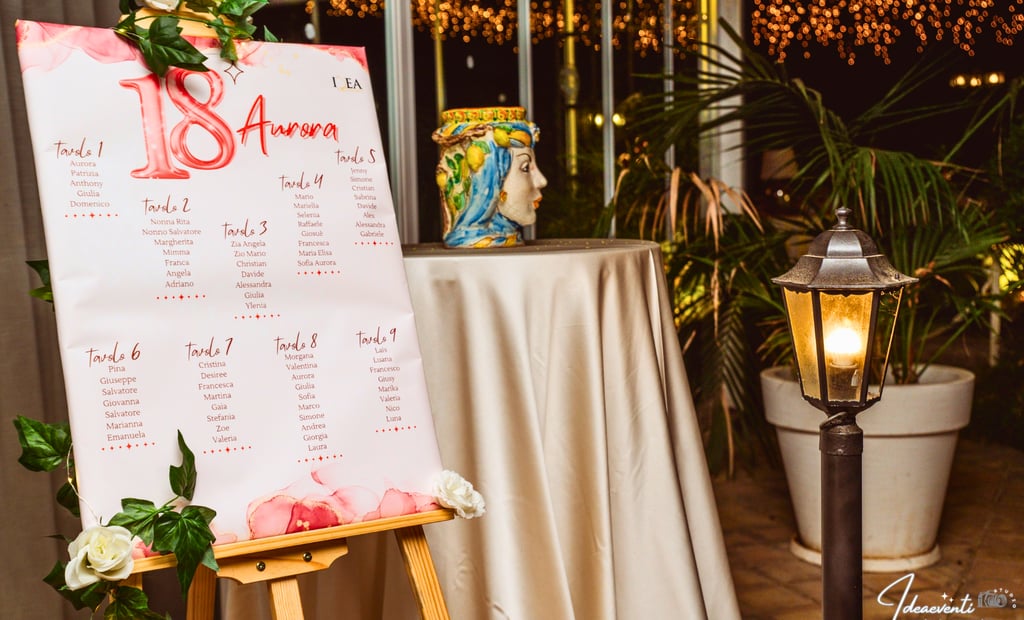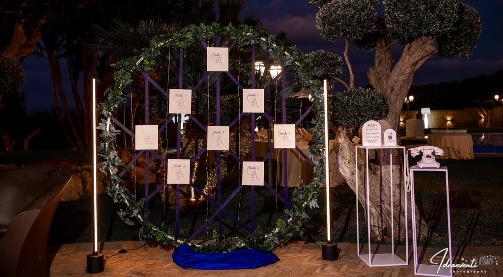 Può essere allestito con cartellini, cornici o elementi floreali, in linea con il tema dell’evento, e diventare anche un angolo d’accoglienza o di benvenuto per gli ospiti.